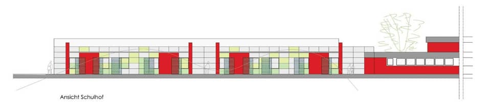 Geschützter Spiel- und Pausenhof: Der Pausenhof wird durch die Erweiterung eingefasst und bietet befestigte Wege, Fahrstrecken zur Verkehrserziehung und Sandflächen mit Spielgeräten für die Husumer Schüler sind vorgesehen.