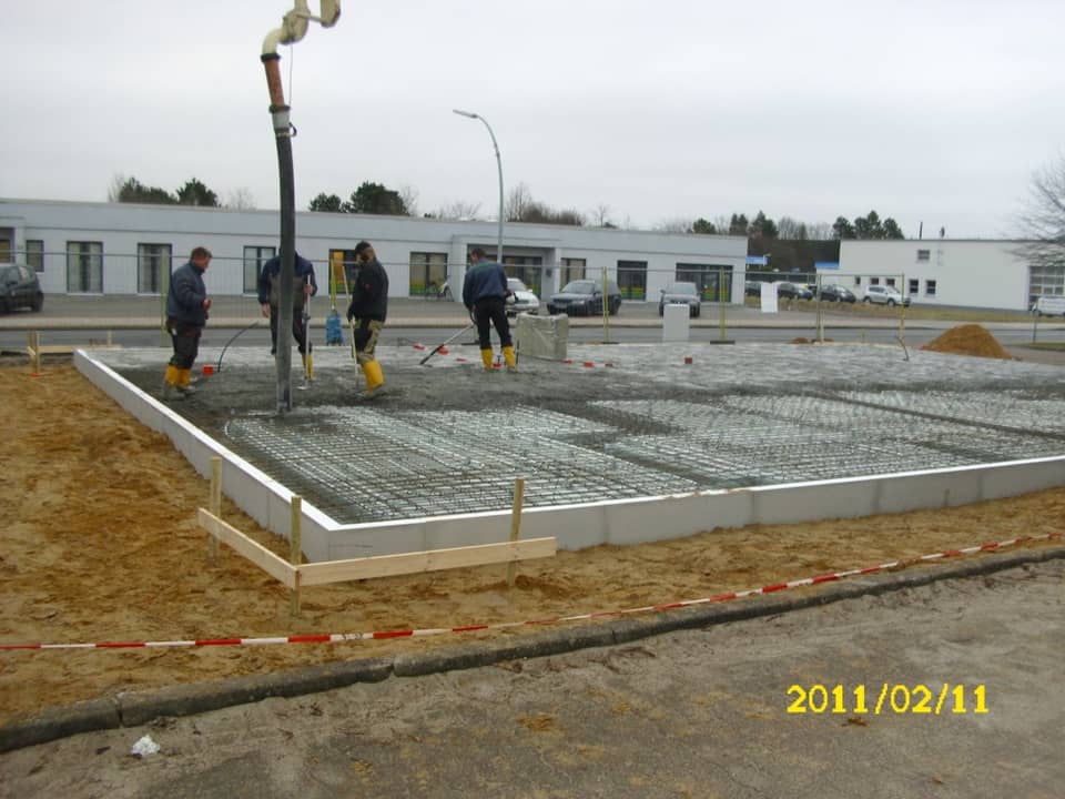 Es ist soweit - das Gebäude ist fertig! Nach Einbau der Futura-Sohle wurden die vorgefertigten Leca-Betonwände gestellt, das Dach gefertigt und die Fenster eingebaut. Auch der Innenausbau ist abgeschlossen und das Gebäude durch zwei Büros und eine Praxis bezogen.